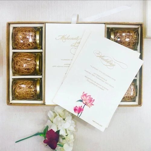 A: Designer Wedding Boxes are made of high-quality cardboard.